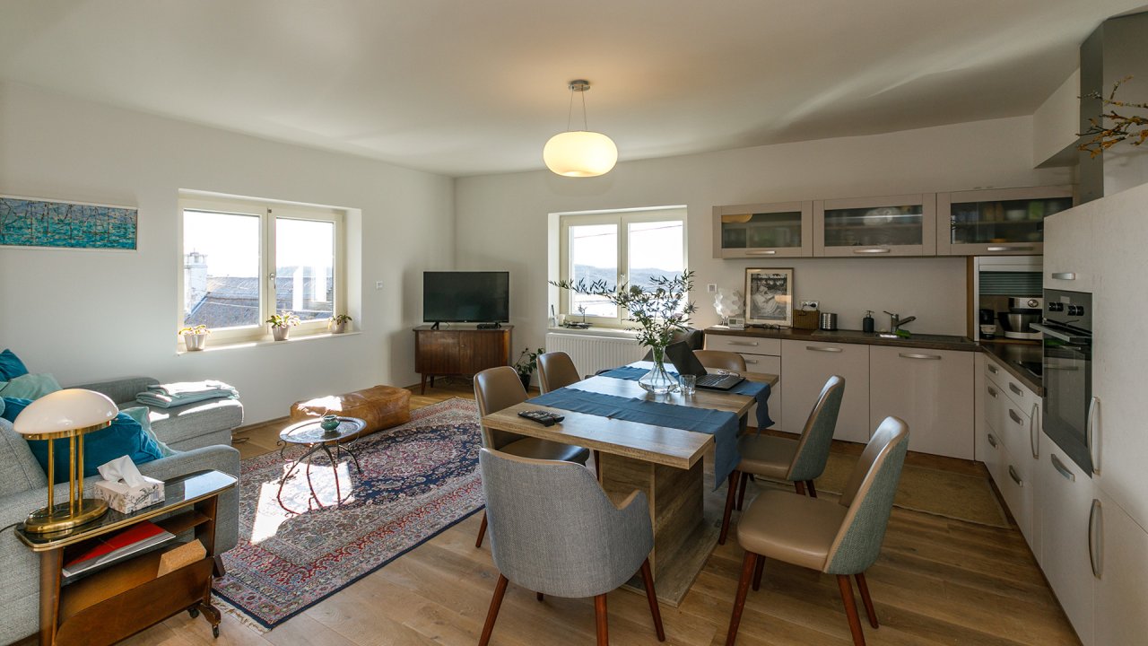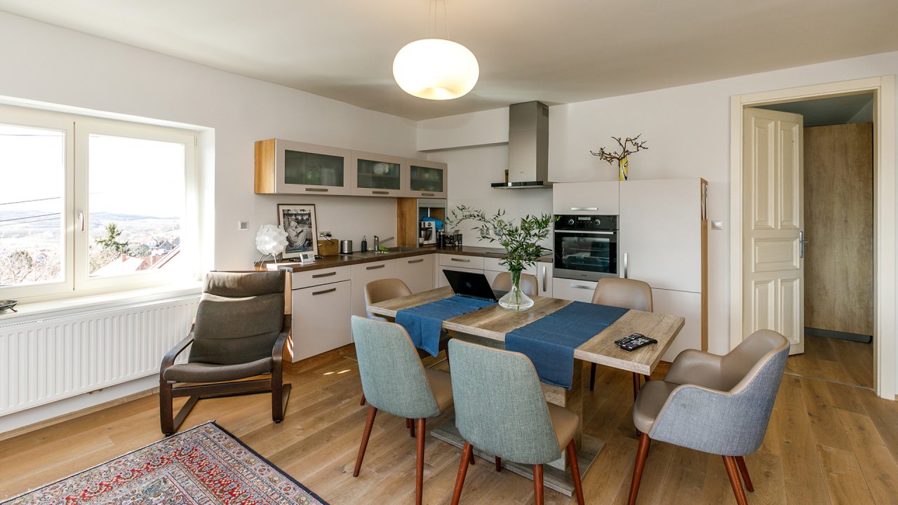 Dankzij de lichte muren en grote ramen is het aangenaam licht.