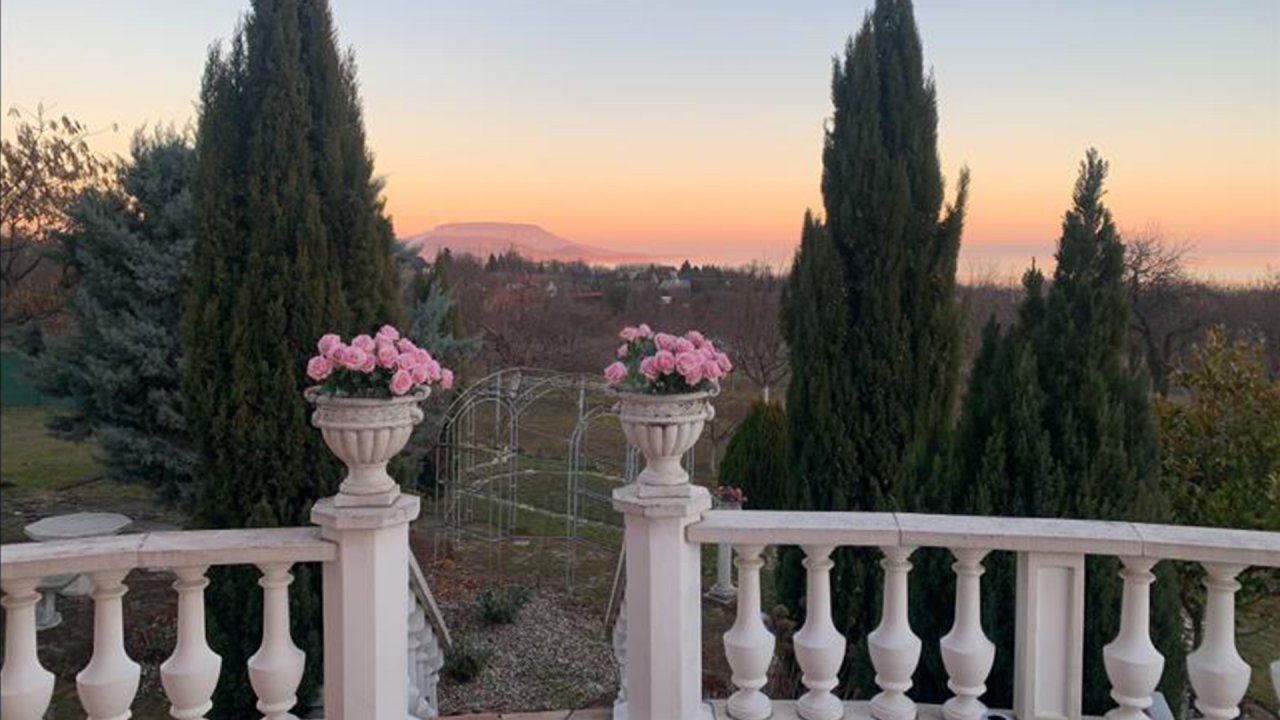 Een stijlvolle vrijstaande woning met panoramisch uitzicht op het Balatonmeer en de golfbaan staat te koop!