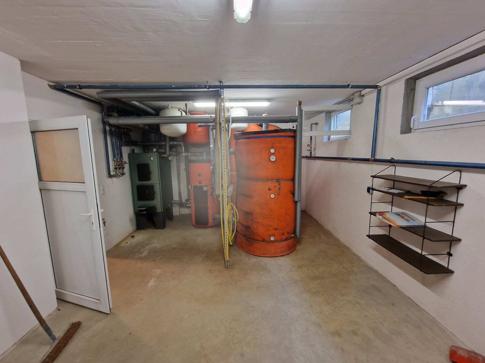 Een houten trap leidt naar twee extra kamers en een toilet op de zolder. De gehele woning beschikt over een kelder van circa 111 m². In de kelder bevinden zich diverse kamers, een stookruimte en een houtopslag met houtopslagplaatsen vanuit de binnenplaats. Een bakstenen bijgebouw met een betonnen vloer en circa 65 m² ruimte grenzend aan de woning, wordt momenteel gebruikt als houtopslag. De woning beschikt over een dubbele garage en een garage met bergruimte en toegang tot de woning.