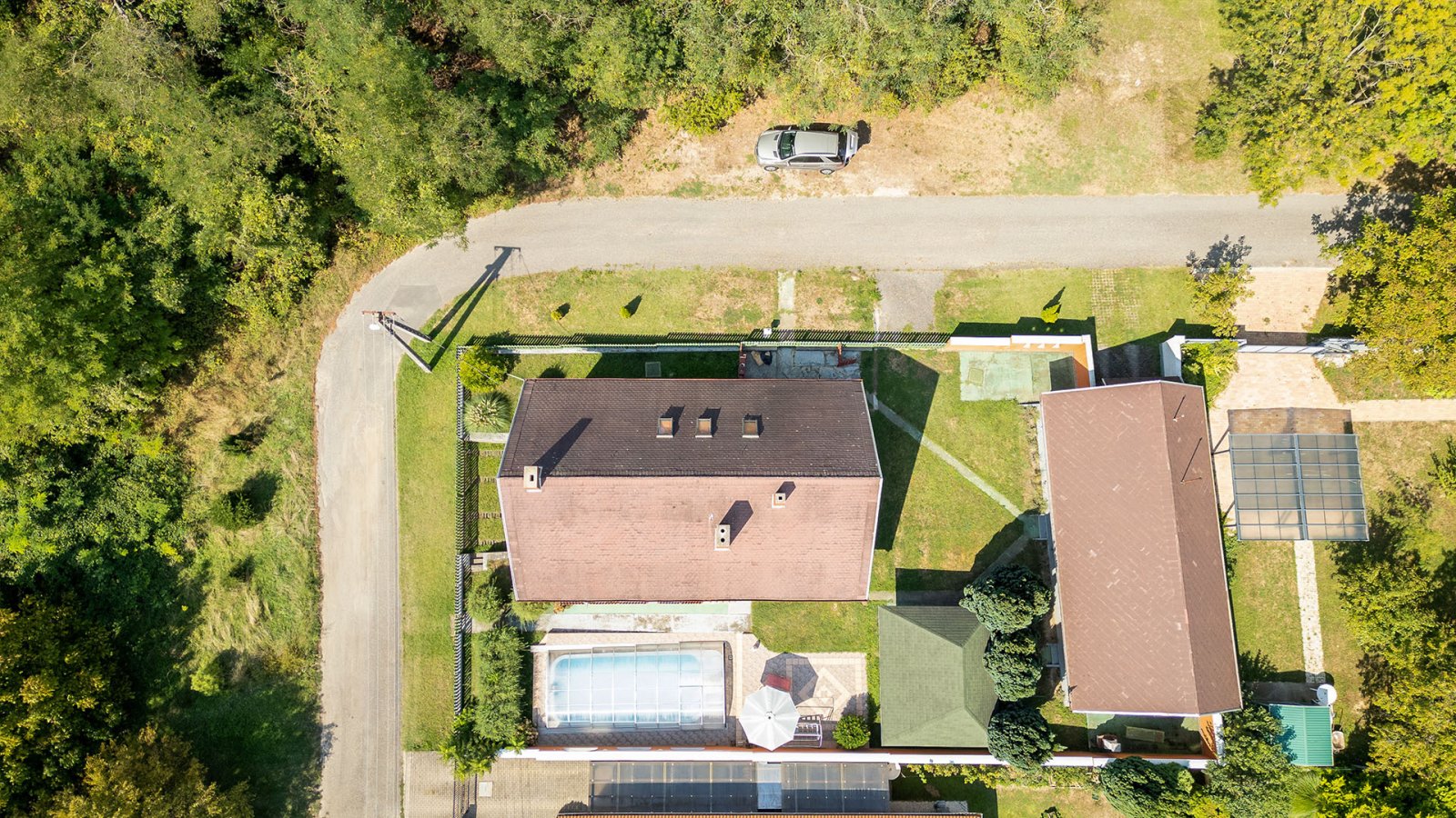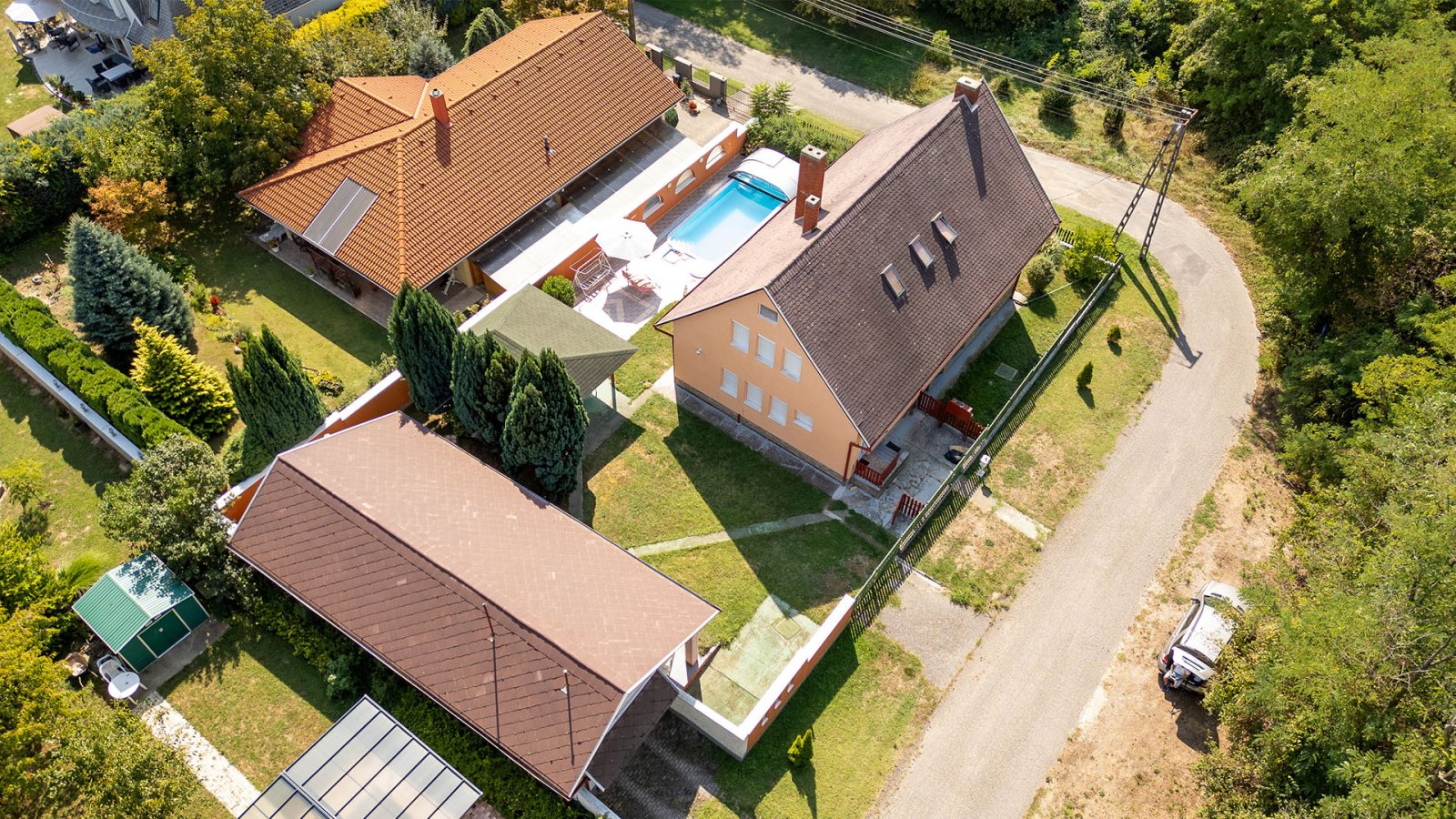 Een vrijstaande woning met zwembad staat te koop nabij het centrum van Hévíz, ideaal voor zowel residentieel als commercieel gebruik.
