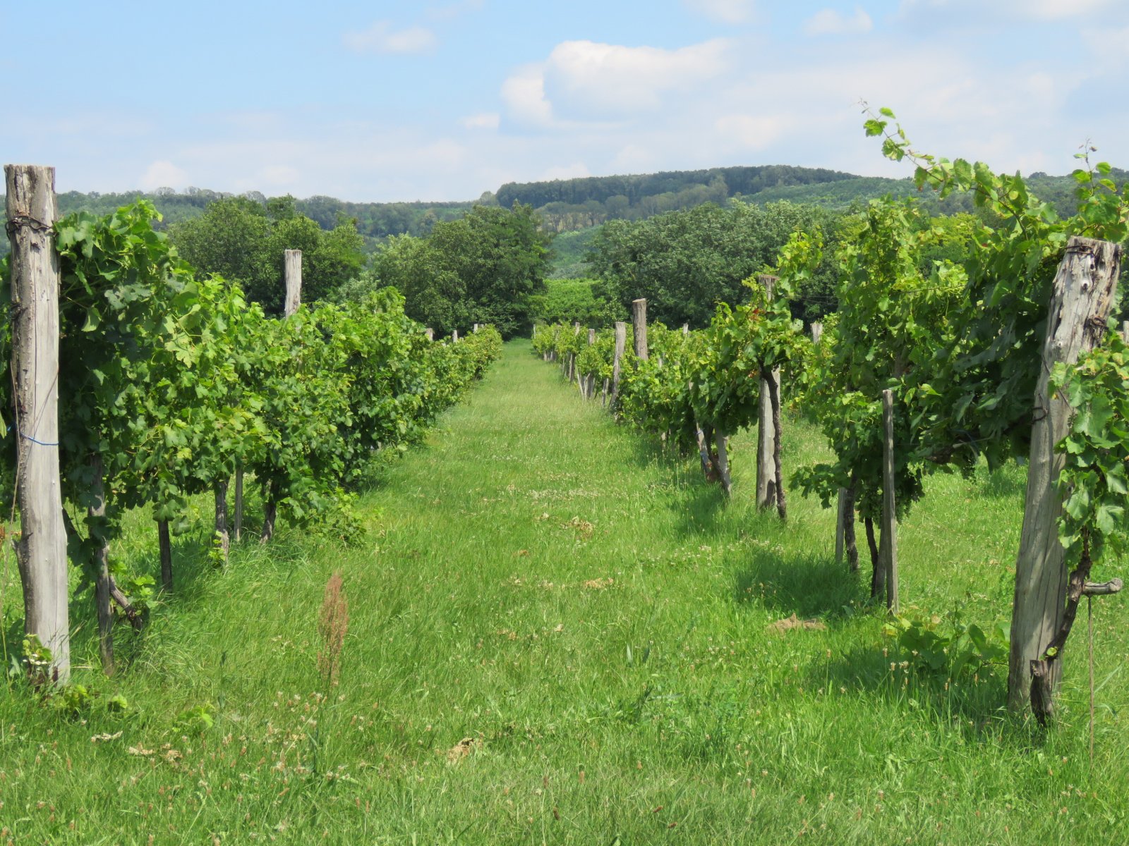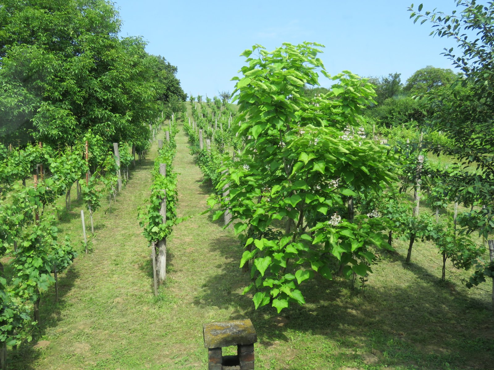Het terrein is voornamelijk beplant met wijnranken. Daarnaast zijn er weilanden met talrijke fruitbomen, akkerland en een moestuin van 800 m².
