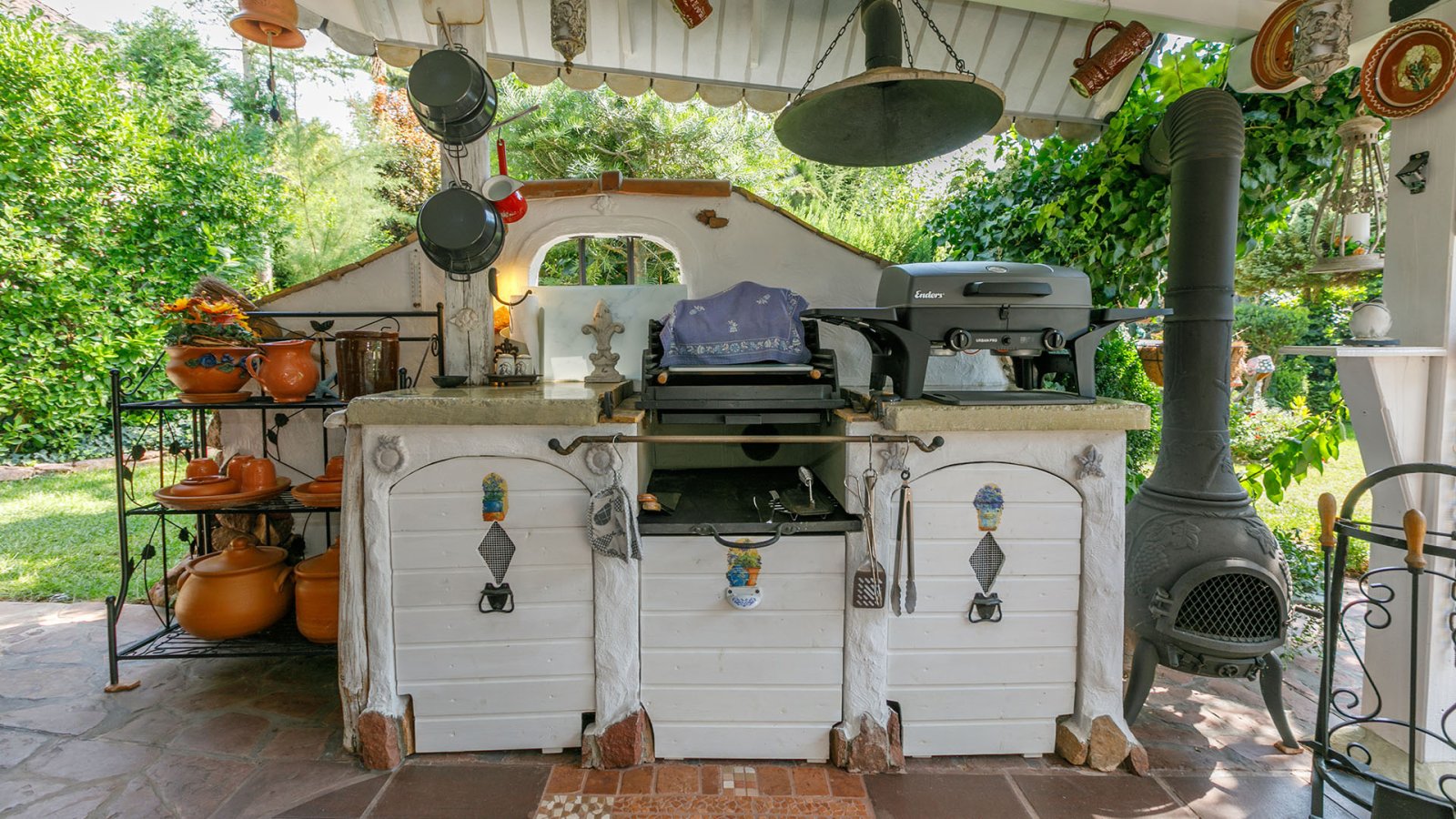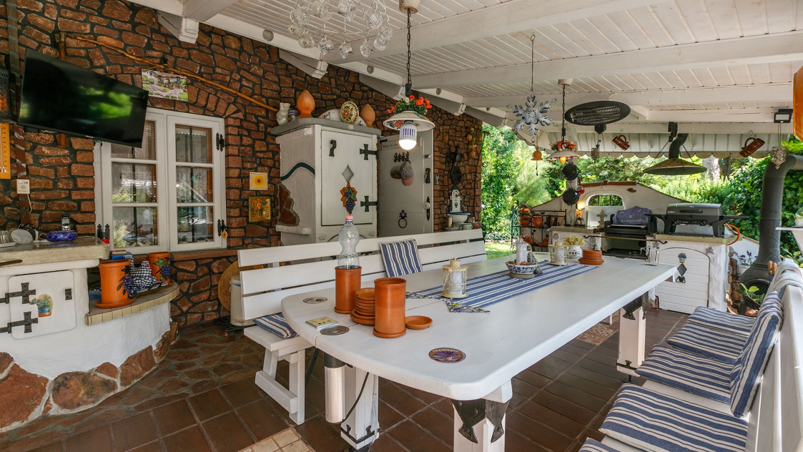 De buitenruimte van de woning is een waar hoogtepunt. Een pittoresk tuinmeer nodigt u uit om te ontspannen en te vertoeven, terwijl een stijlvolle buitenbar de ideale setting biedt voor gezellige bijeenkomsten. De geklimatiseerde wijnkelder is niet alleen een praktische toevoeging, maar ook een bijzondere ruimte voor wijnliefhebbers en -kenners.