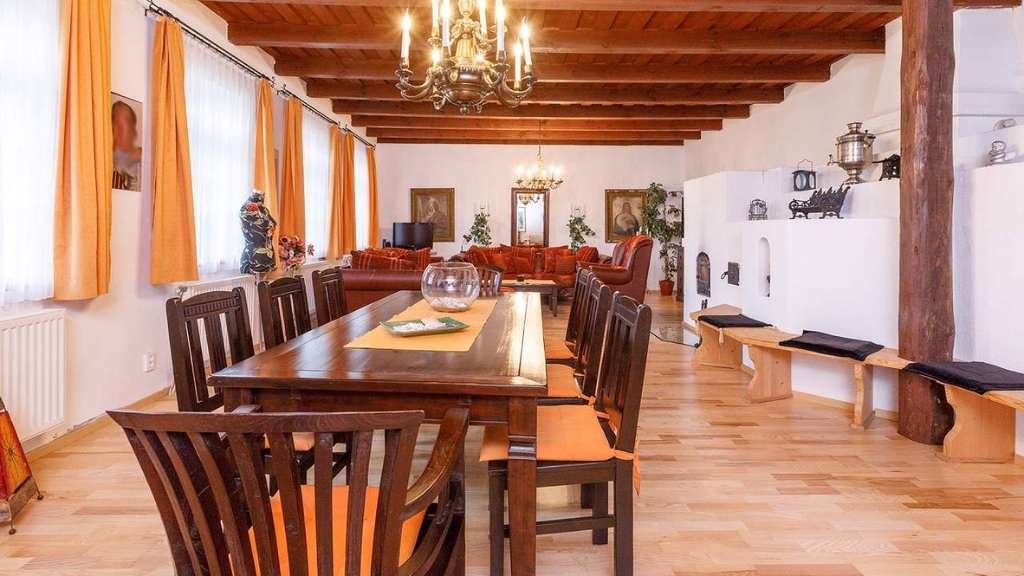 De woning beschikt over diverse ruime woonruimtes, waaronder een indrukwekkende grote woonkamer met een 7 meter lange tegelkachel – een absolute blikvanger en een plek van comfort. De vier badkamers, waarvan één met whirlpool en stoombad, maken een flexibel gebruik van de woning mogelijk. De woning kan eenvoudig worden opgedeeld in vier aparte wooneenheden, wat diverse mogelijkheden biedt, zowel voor meerdere generaties als voor verhuur.