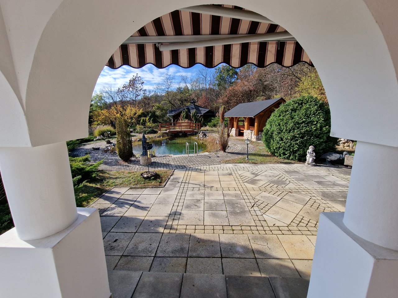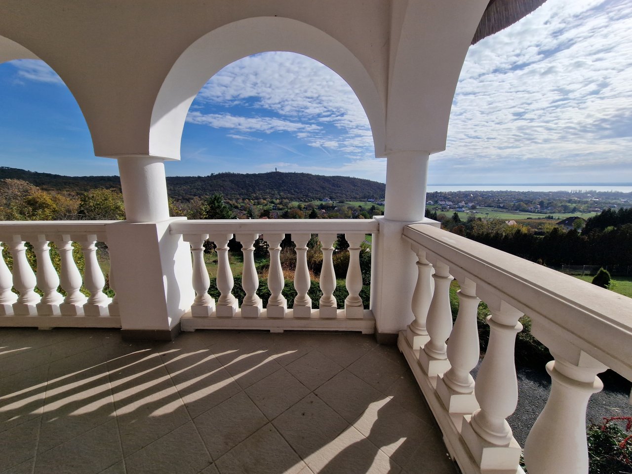 De indrukwekkende oprit vormt het markante gebouw en het uitzicht op het Balatonmeer is adembenemend.