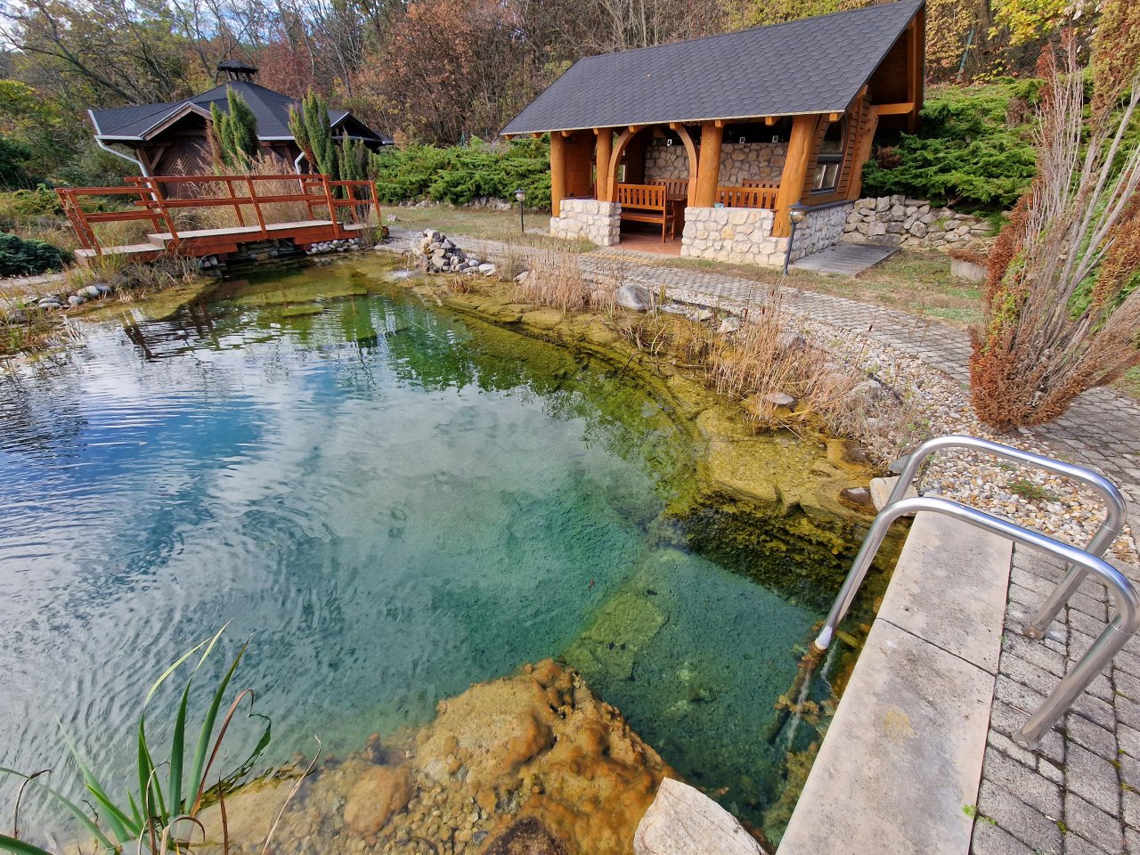 - Ernaast bevindt zich de lounge met bar en directe toegang tot het terras en de zwemvijver.
