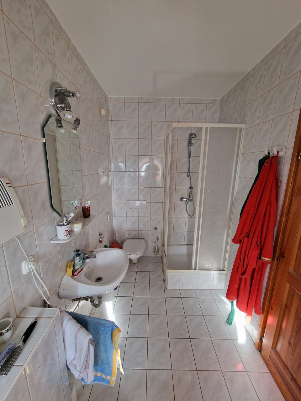 Zoet water, afvalwater via septictank, hoogspanning, verwarming via geothermische warmtepomp en tegelkachel met warmwatervoorziening, evenals zonne-energiesysteem