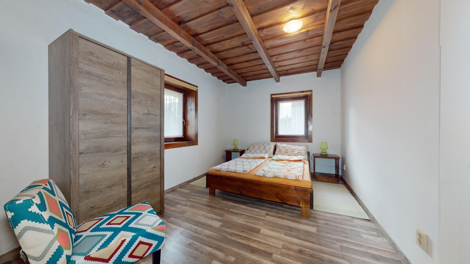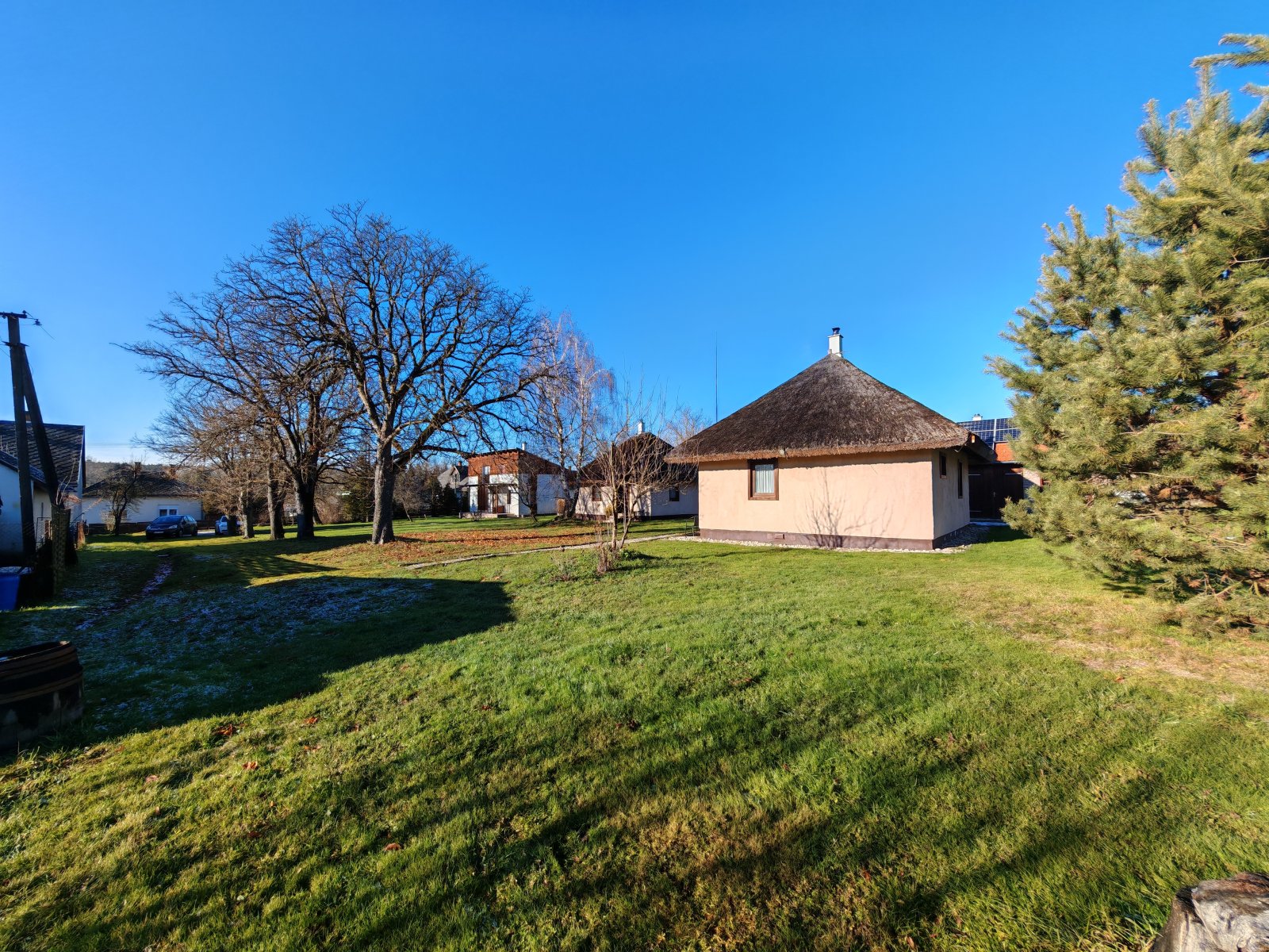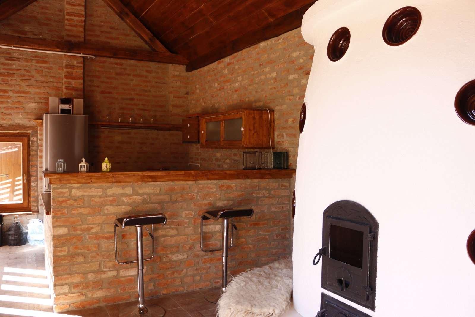Het complex omvat ook twee rietgedekte huisjes met strobalen muren en een zorgvuldig gerestaureerde schuur met een traditionele koepelkachel. Elk huisje heeft twee slaapkamers, een moderne badkamer en een volledig uitgeruste keuken. De schuur dient als gemeenschappelijke ruimte en is een perfecte plek voor sociale bijeenkomsten en grotere evenementen.