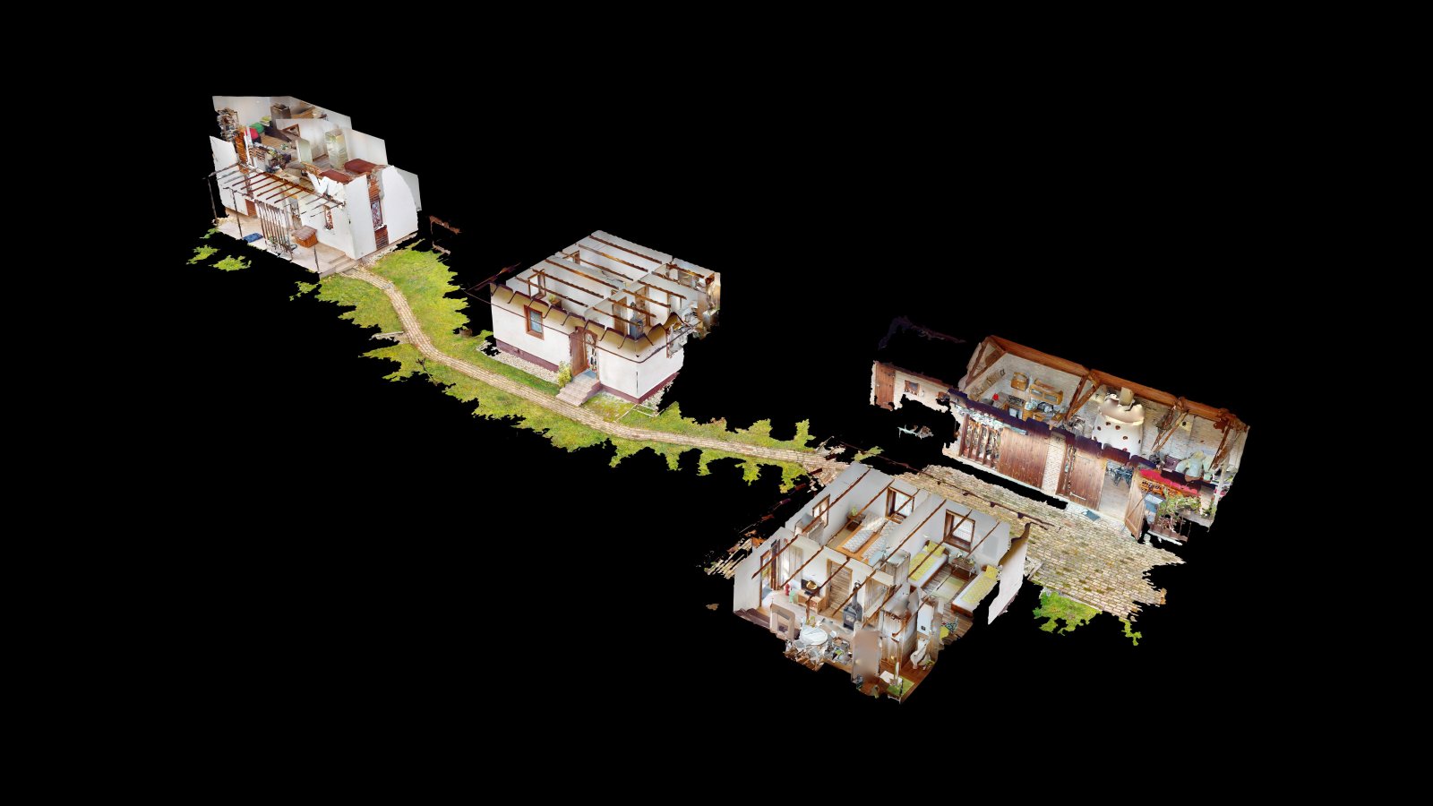 Het complex – gebouwd of volledig gerenoveerd in 2014 – bestaat uit verschillende gebouwen en omvat in totaal drie nieuwe woningen met zes kamers. Een daarvan is een woongebouw met twee verdiepingen dat opvalt. De begane grond omvat een woonkeuken, een slaapkamer en een badkamer, terwijl de bovenverdieping dienstdoet als hal en nog een slaapkamer. Dit gebouw is ideaal voor het ontvangen van familie of vrienden, maar ook voor toeristische doeleinden.