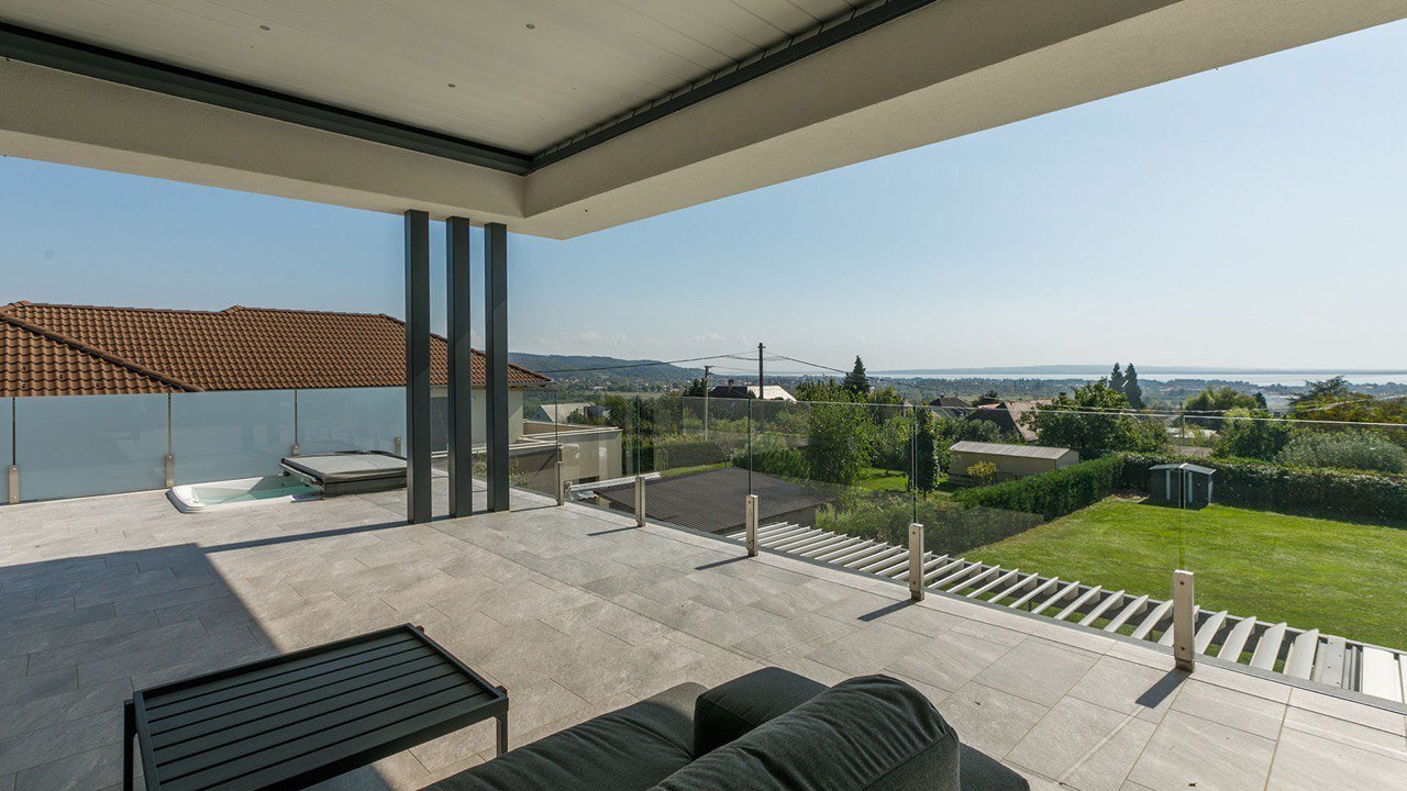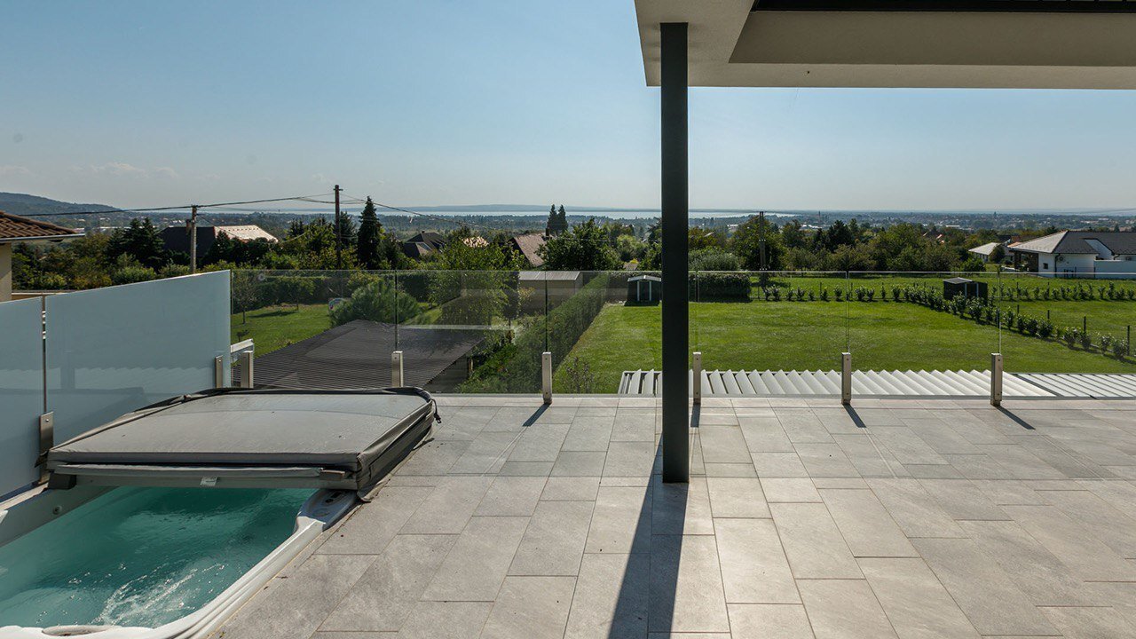 De temperatuur in de kamers is afzonderlijk regelbaar. Het echte hoogtepunt van de wellnessruimte is de in het terras ingebouwde whirlpool voor drie personen, met een panoramisch uitzicht op het Balatonmeer. De klimaatgestuurde pergola van Umbroll zorgt bovendien voor schaduw op het bovengelegen terras.