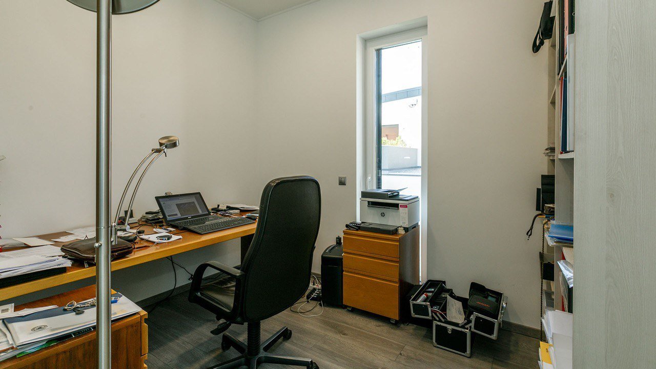De stroomvoorziening wordt verzorgd door een 15 kW zonne-energiesysteem, waardoor het gebouw vrijwel zelfvoorzienend is.