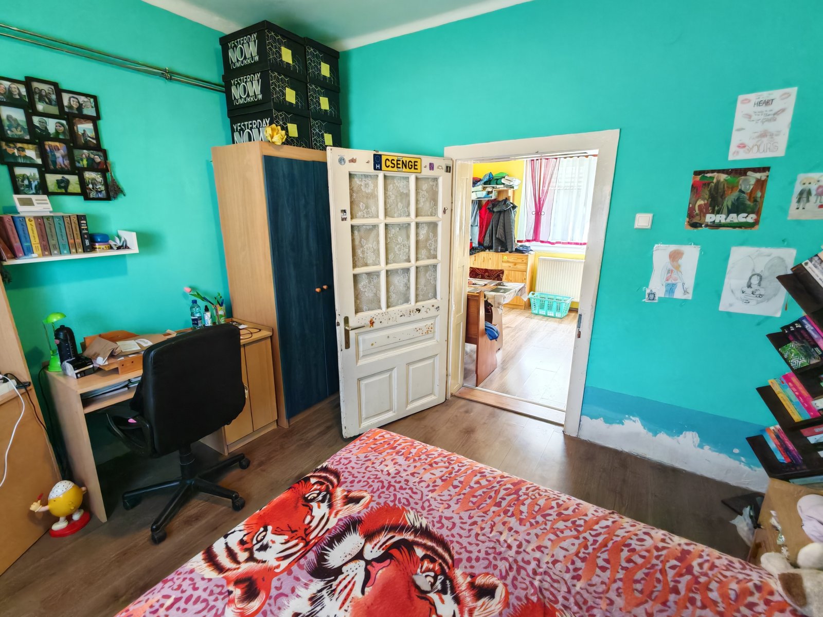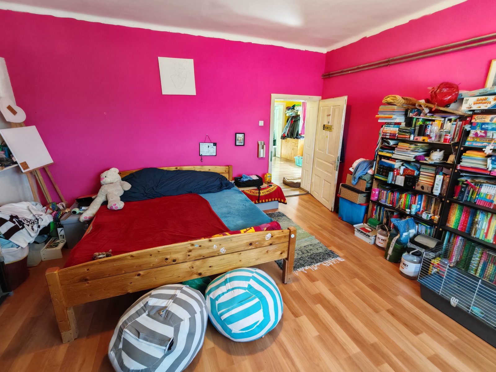 - Aan de voorzijde twee even grote kamers (slaapkamer, woonkamer)