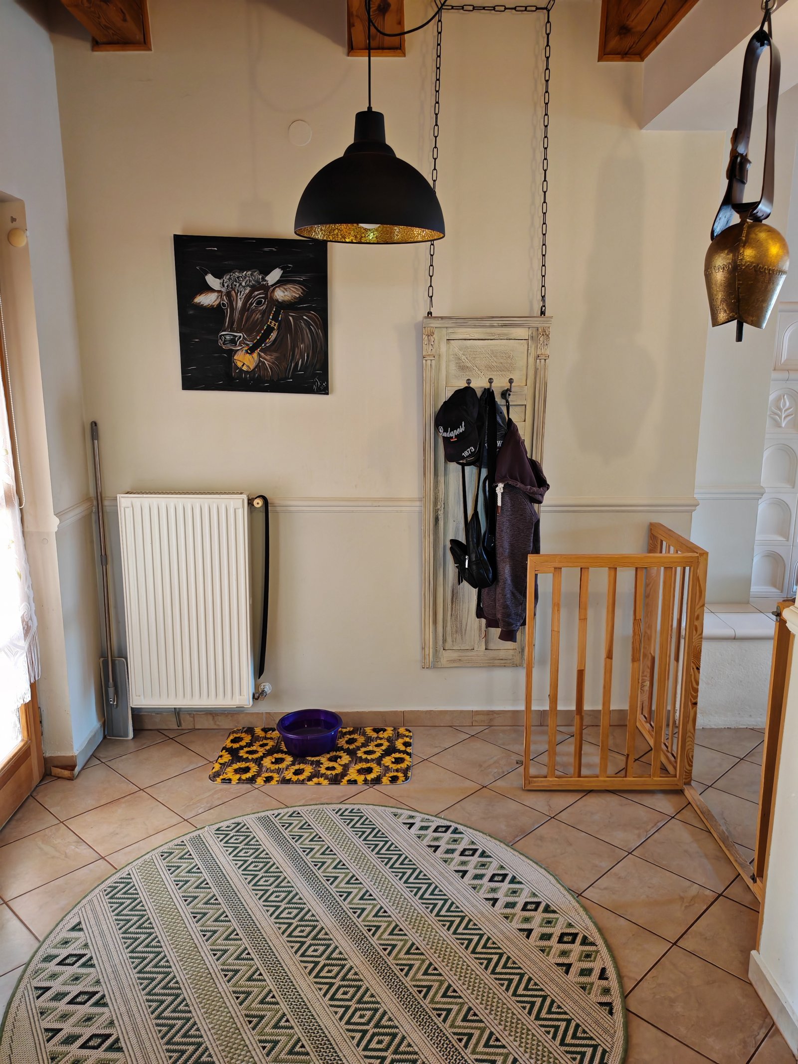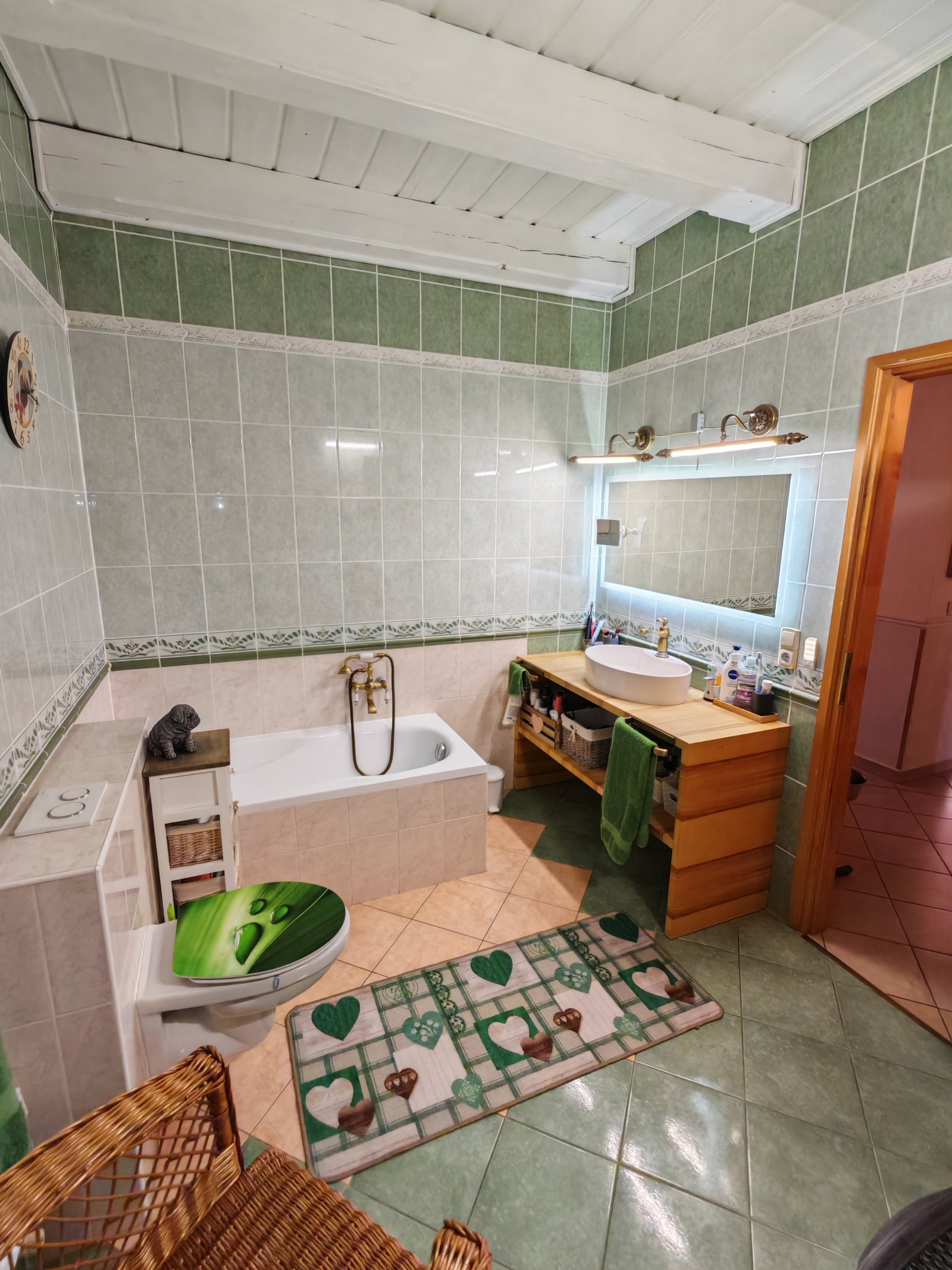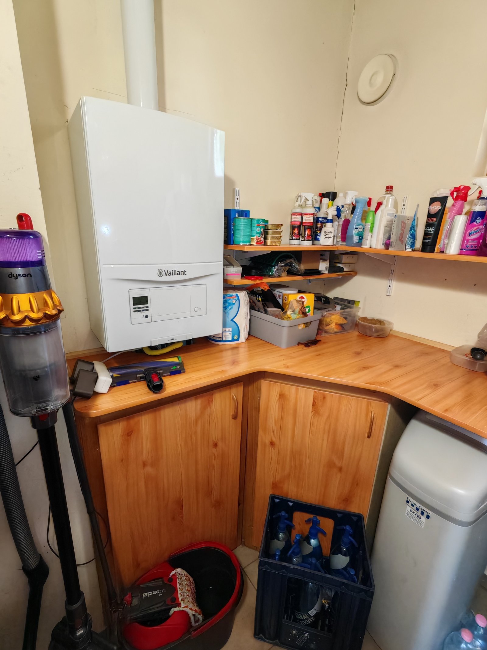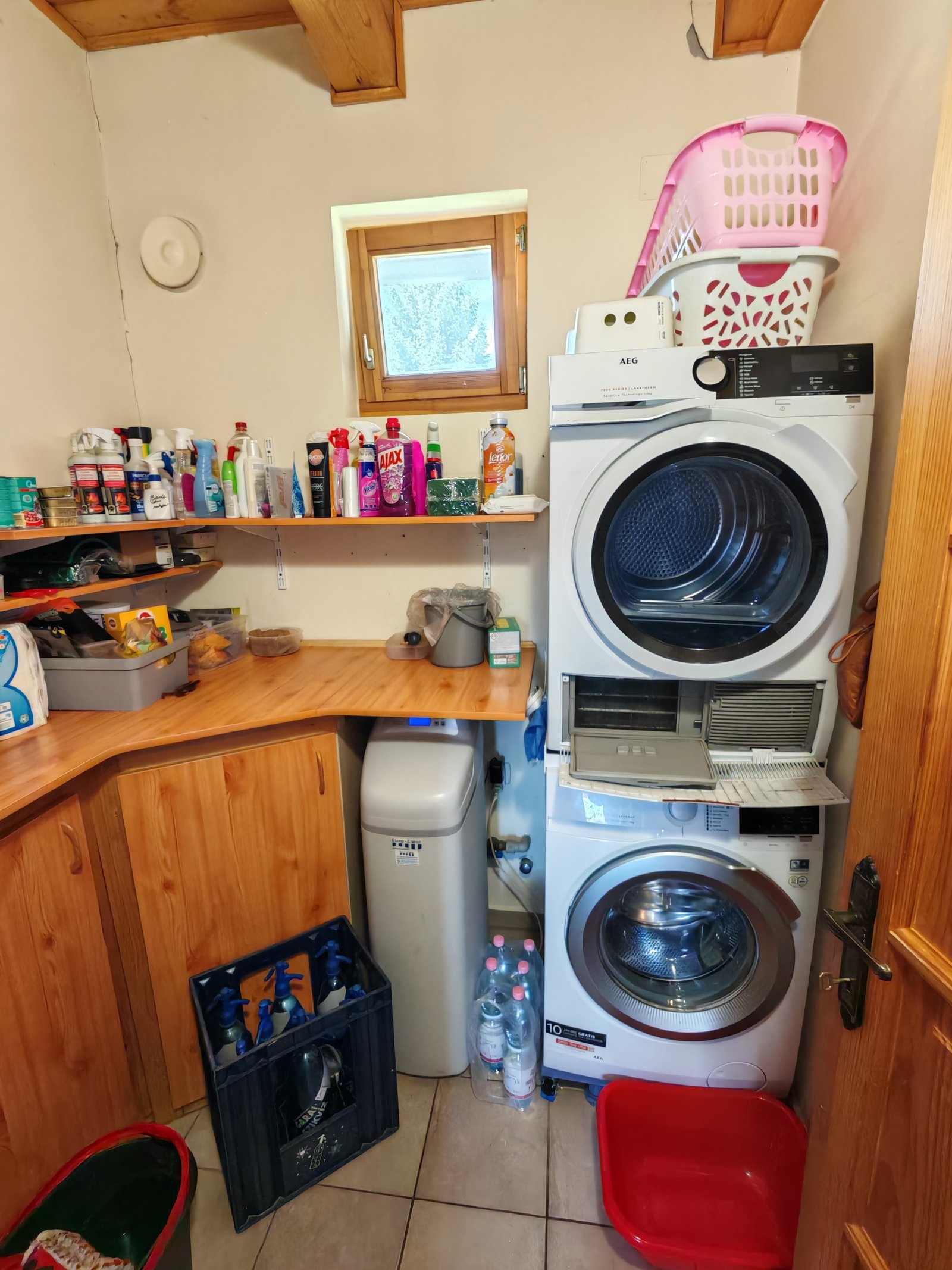 - Verderop, rechts van de hal, bevindt zich de bijkeuken met waterzuivering, nieuwe gasketel, wasmachine en droger