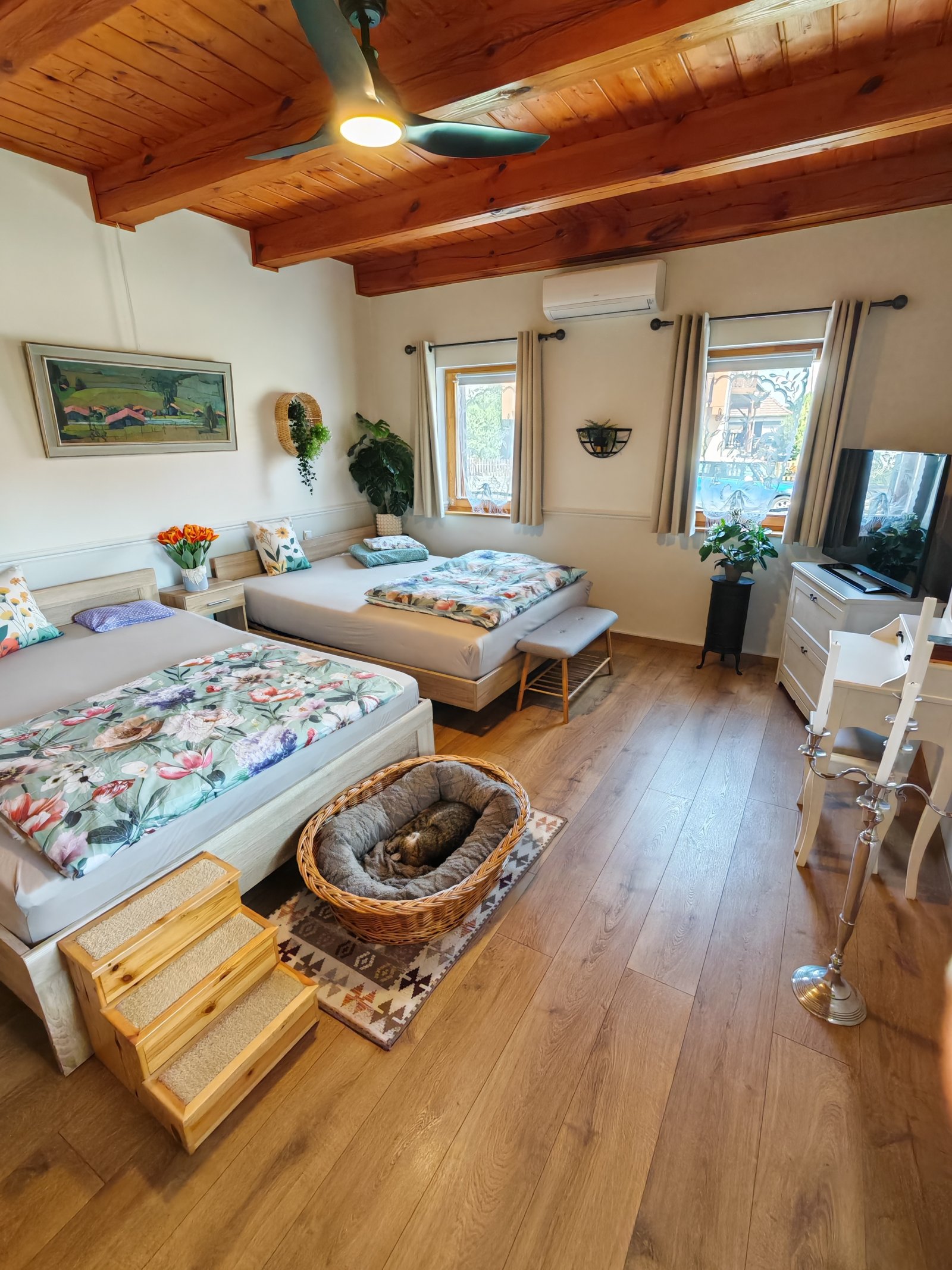 - En aan het einde van de rechterhal de grote slaapkamer met airconditioning