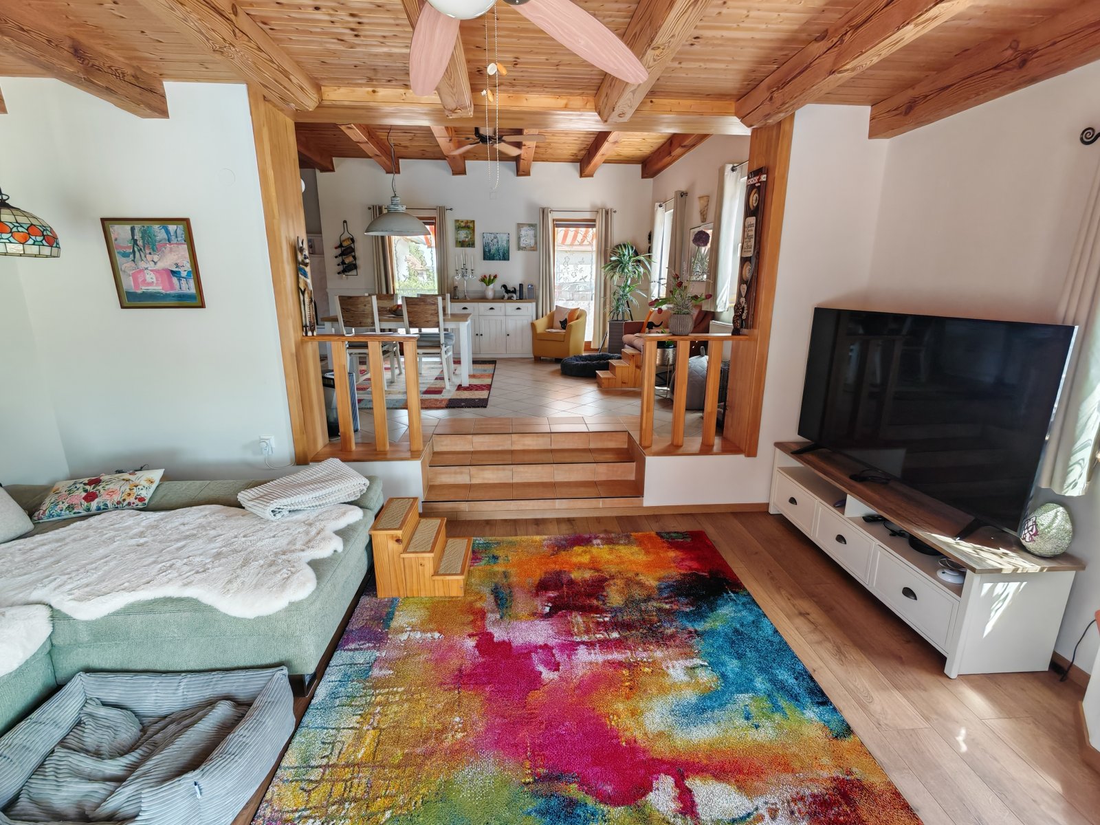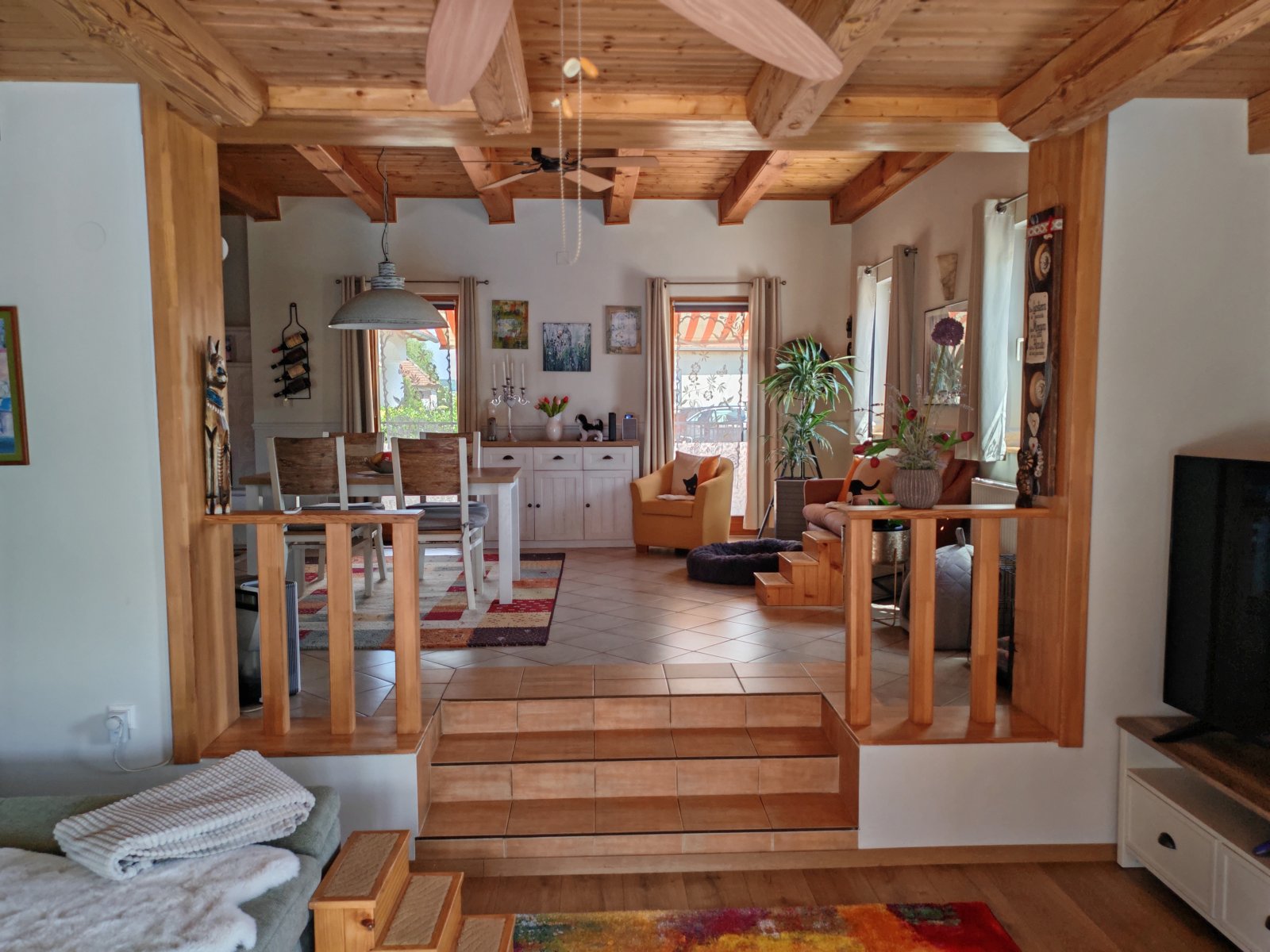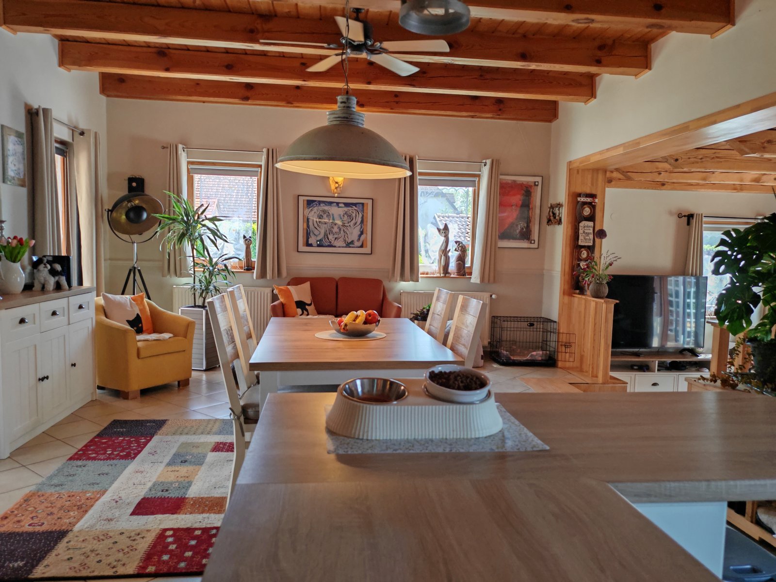 - Vanuit de entree komt u direct in de woonkamer van het huis, waar zich tegenover de keuken bevinden: