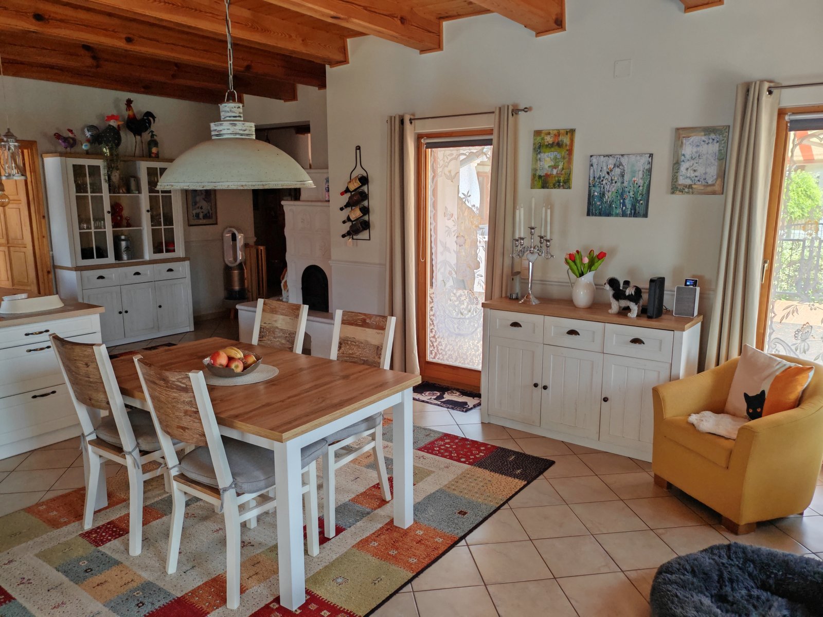 - Vanuit hier leidt een grote schuifpui naar de tuin en het zwembad.