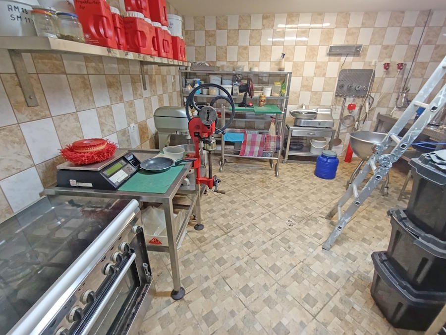 Vooral in de zomer biedt het prachtige terras met stenen pizzaoven een schaduwrijke plek om te ontspannen. In het bijgebouw bevindt zich een klein gastenappartement met kitchenette en badkamer, en ernaast bevindt zich een werkplaats met wateraansluiting en drie industriële stroomaansluitingen. Een prachtige gewelfde kelder biedt tevens de mogelijkheid om aardappelen, appels en nog veel meer te bewaren.