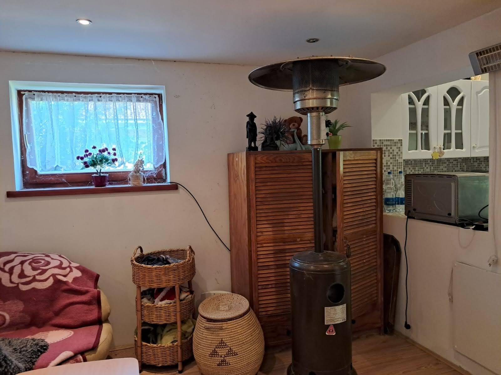 De hoofdwoning is verdeeld in een mooie, ruime hal, een keuken met een kleine aangrenzende berging, een ruime slaapkamer met airconditioning, een eetkamer met toegang tot de grote woonkamer en een drempelvrije badkamer met inloopdouche. De woonkamer is voorzien van een hoogwaardige tegelkachel en er is ook de mogelijkheid tot verwarming met gasconvectoren.