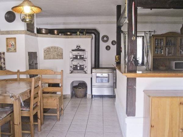 Verwarming: Tegelkachel, boiler met radiatoren, open haard. Brandstof: Hout