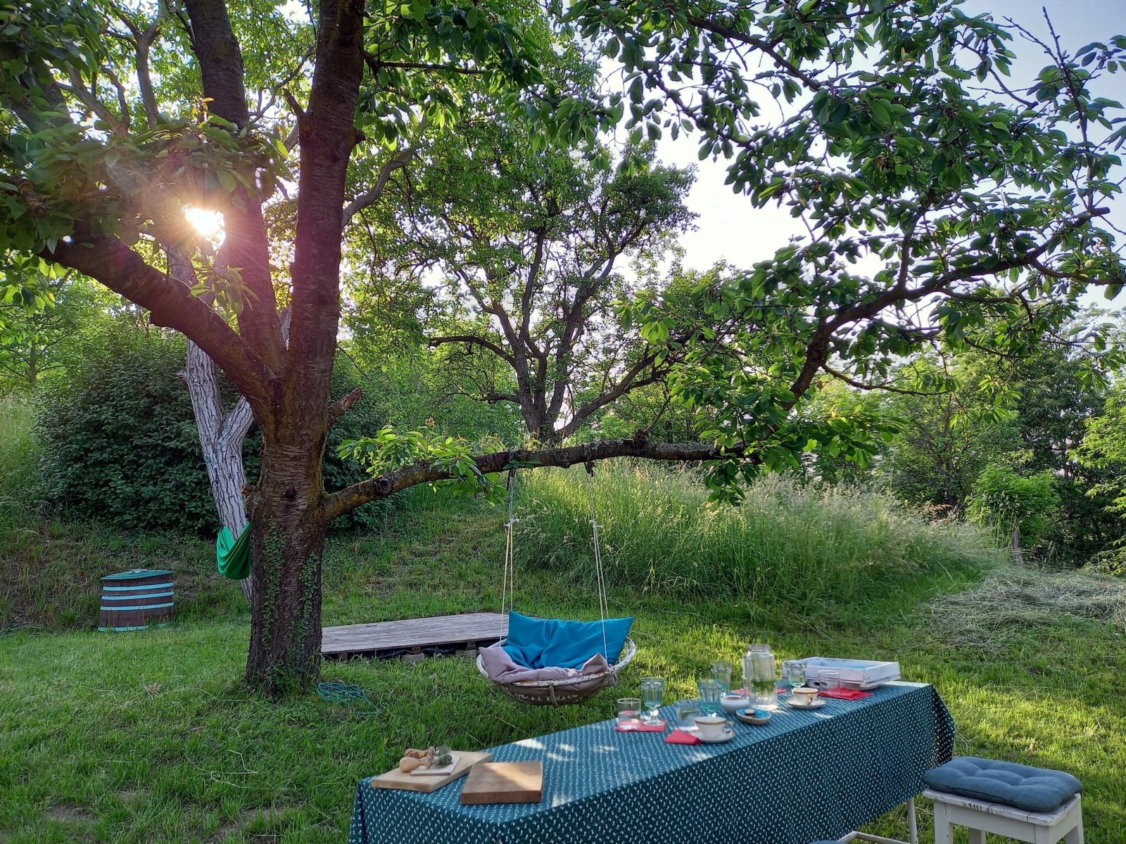 Met circa 5.171 m² heeft u volop ruimte voor tuinieren, fruitteelt en permacultuur. Fruitbomen (appel, peer, kers, zure kers, pruim, walnoot) zijn reeds aanwezig; er zijn onder andere moestuinen aangelegd. Er worden tomaten, courgettes, aubergines, paprika's, physalis en maïs verbouwd.