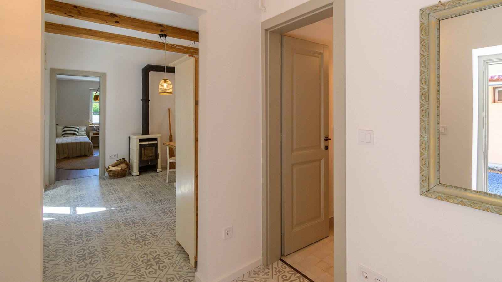 Dit instapklare landhuis combineert moderne functionaliteit met traditionele charme: lichte, goed ingedeelde kamers, een op maat gemaakte keuken met nieuwe apparatuur en een gezellige open haard voor gezellige avonden. Vloerverwarming en airconditioning zorgen het hele jaar door voor comfort. Bijzonder: het huis is verdeeld in twee wooneenheden met aparte ingangen – perfect voor gasten, thuiskantoren of wonen met meerdere generaties. Buiten maken een veranda en een goed onderhouden tuin met irrigatiesysteem het geheel compleet – kom aan, voel je goed, geniet.