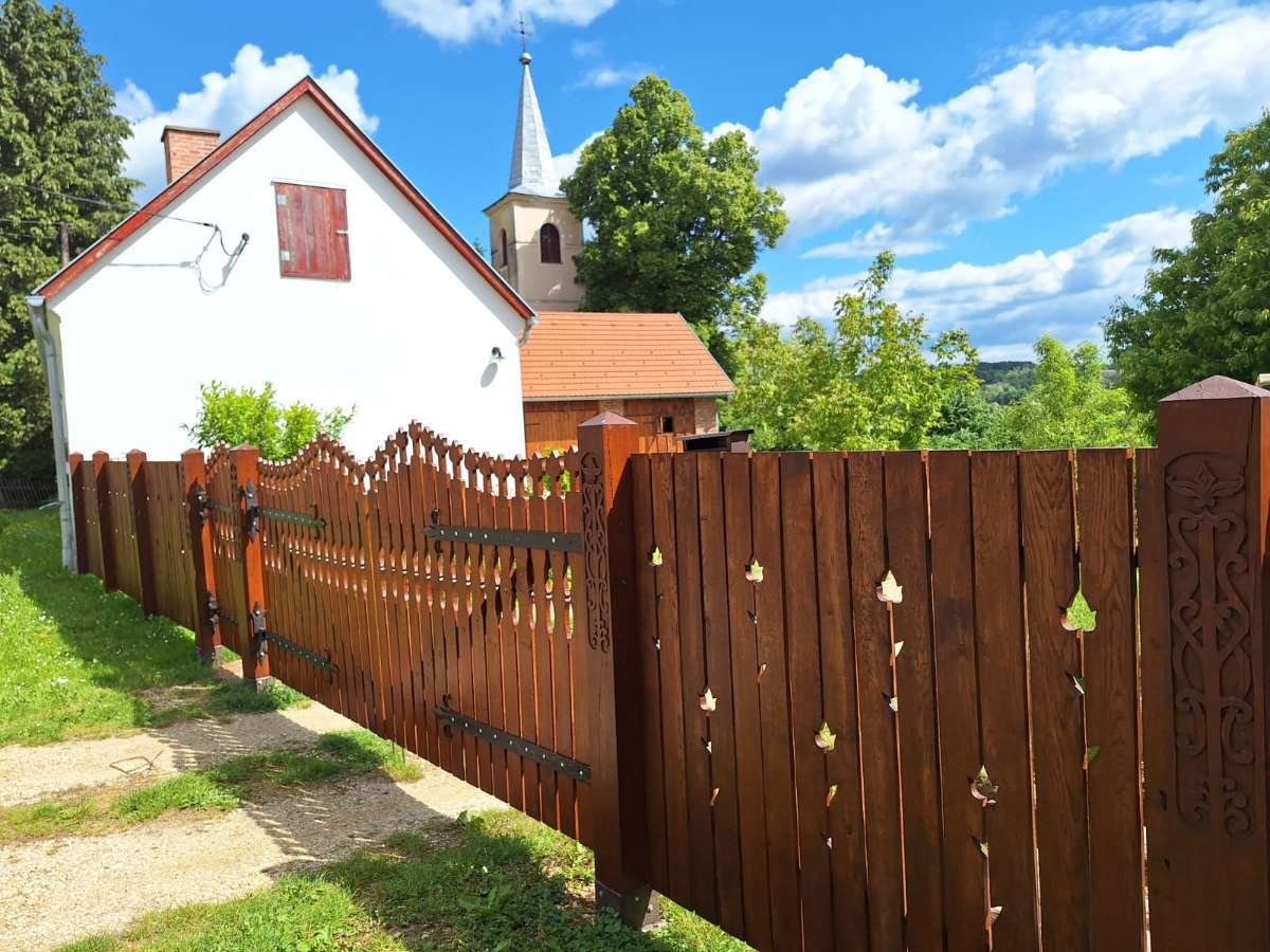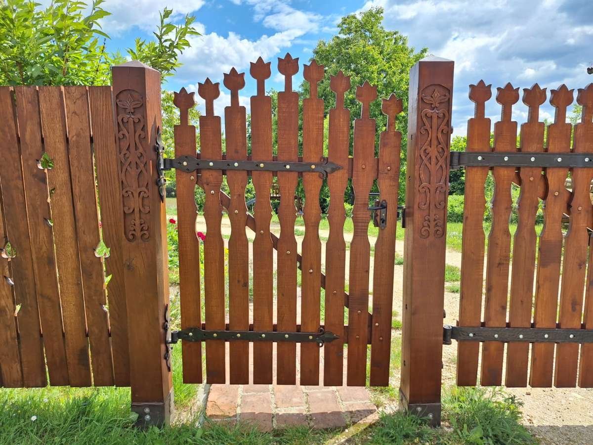 De unieke schoonheid van het huis wordt weerspiegeld in de landschappelijke, traditionele lokale uitstraling, een houten hek met levensboommotieven, een rustiek maar modern, comfortabel interieur dat voldoet aan de eisen van vandaag, een balkenplafond en een artistiek vormgegeven, multifunctionele kachel.