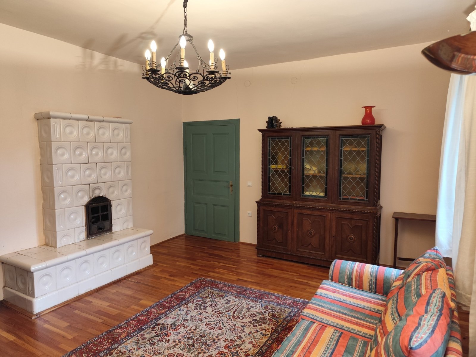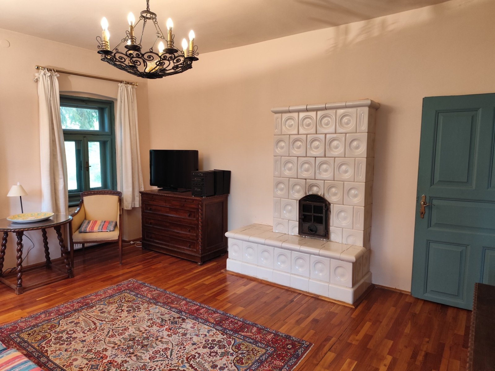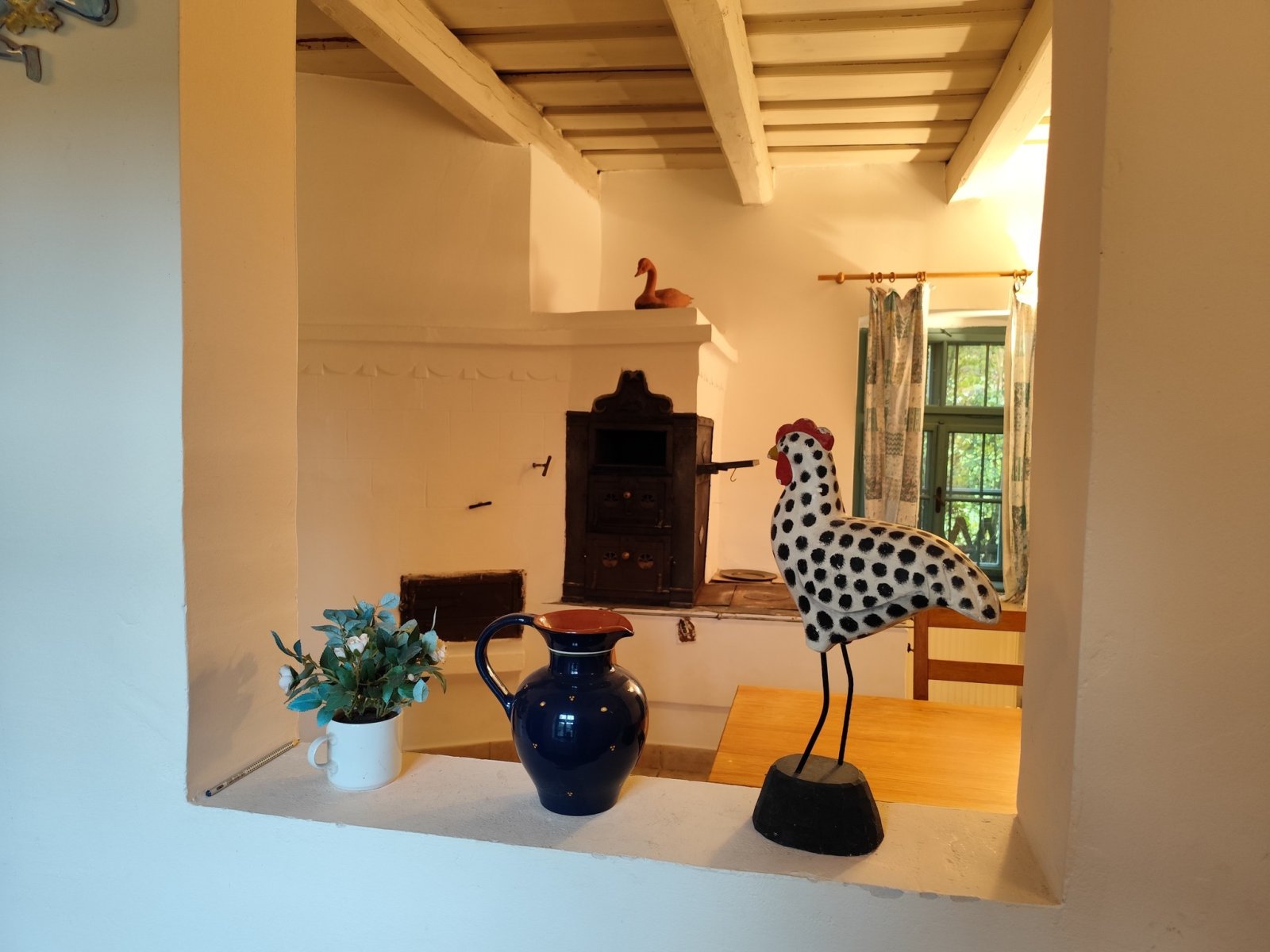 In de keuken is een gezellige, traditionele kachel bewaard gebleven, die de ruimte als een waar juweel siert. Deze prachtige kachel heeft niet alleen een praktische functie, maar belichaamt ook de geschiedenis en cultuur van het huis.