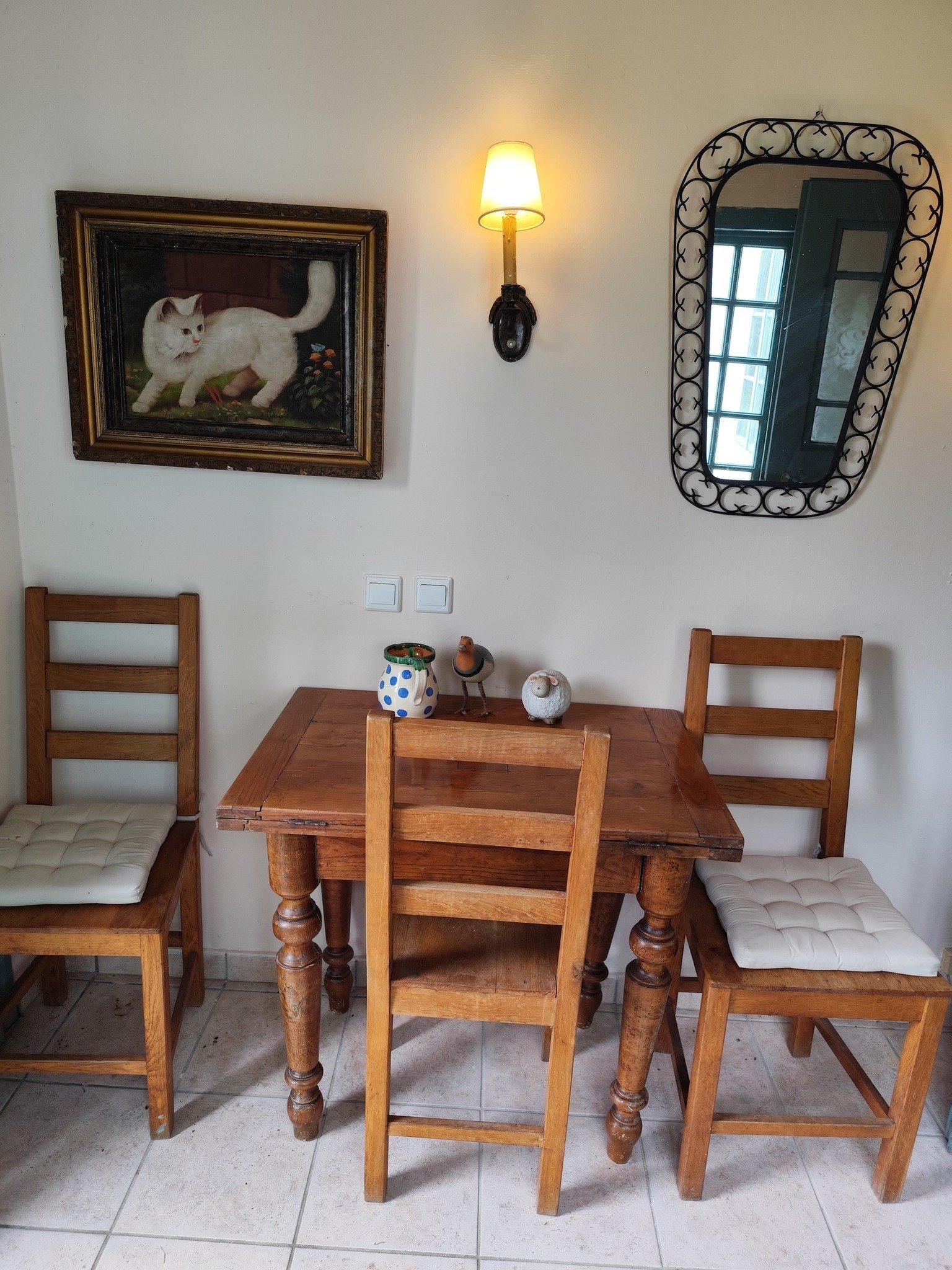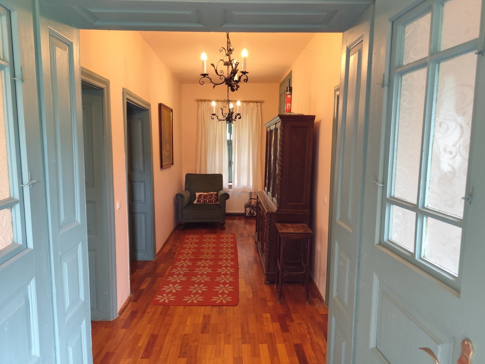 De hal leidt naar een ruime hal, waar de ware charme van het huis zich verder ontvouwt. Binnen bevinden zich twee kamers, een eetkamer, een keuken en een badkamer.
