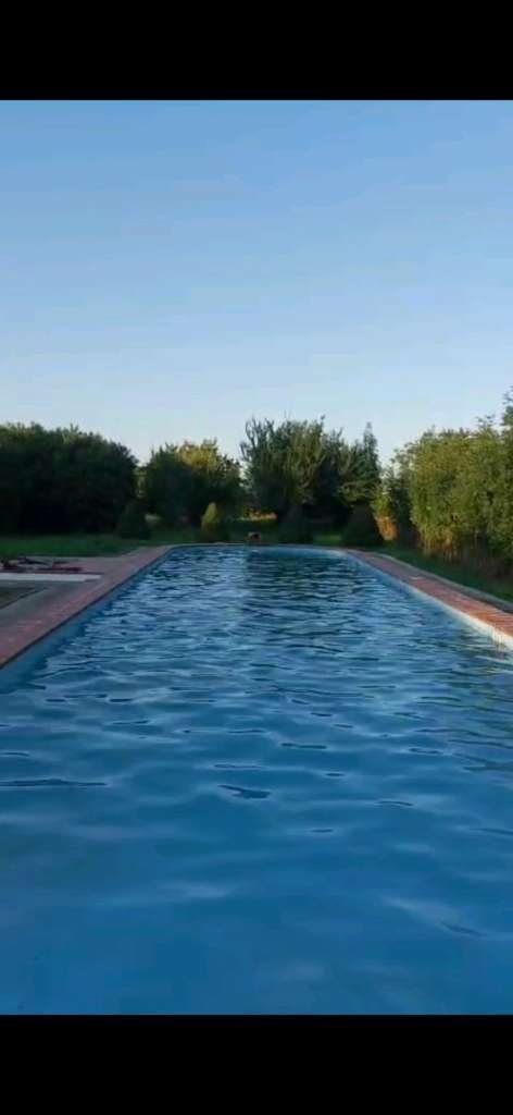 De woning beschikt tevens over een 25-meter zwembad (volledig nieuw: pompen, verlichting, etc.) en een biotoop.