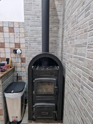 De verwarming is via een houtkachel en twee airconditioningunits.