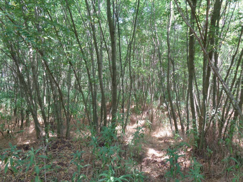 Het perceel is vlak; ongeveer de helft is bedekt met gras en de rest met acacia's en -struiken.