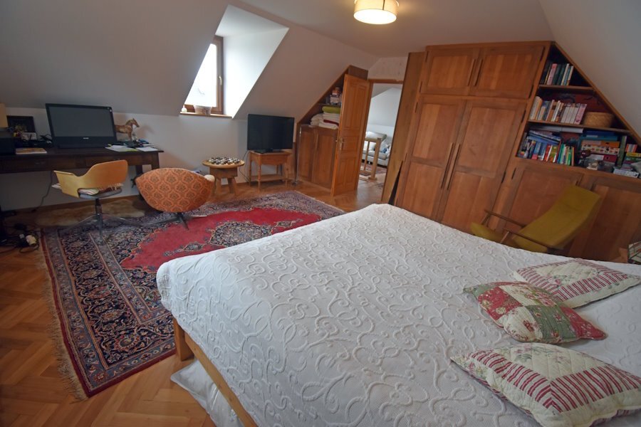 - de woonkamer geeft tevens toegang tot een gezellig overdekt terras van 10 m² met een prachtig uitzicht op de tuin. ... - Op de bovenste verdieping bevindt zich tevens een woonkamer van circa 70 m²