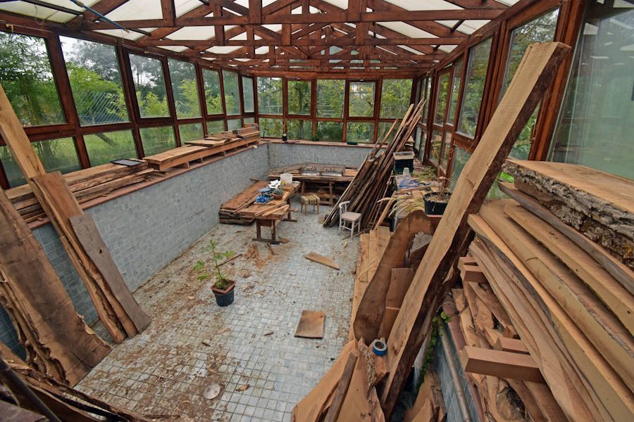Het bijgebouw heeft een vloeroppervlakte van circa 120 m², verdeeld over 4 kamers plus een zolder met galerij. Het kan worden gebruikt als werkplaats en garage, of worden omgebouwd tot een complete woning met 2 appartementen. Er is ook een rookkamer.